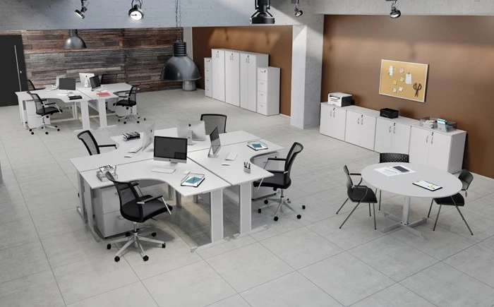 Gavetas | 04 gavetas para pasta suspensa em MDP. Travamento na primeira gaveta e puxadores em polipropileno |